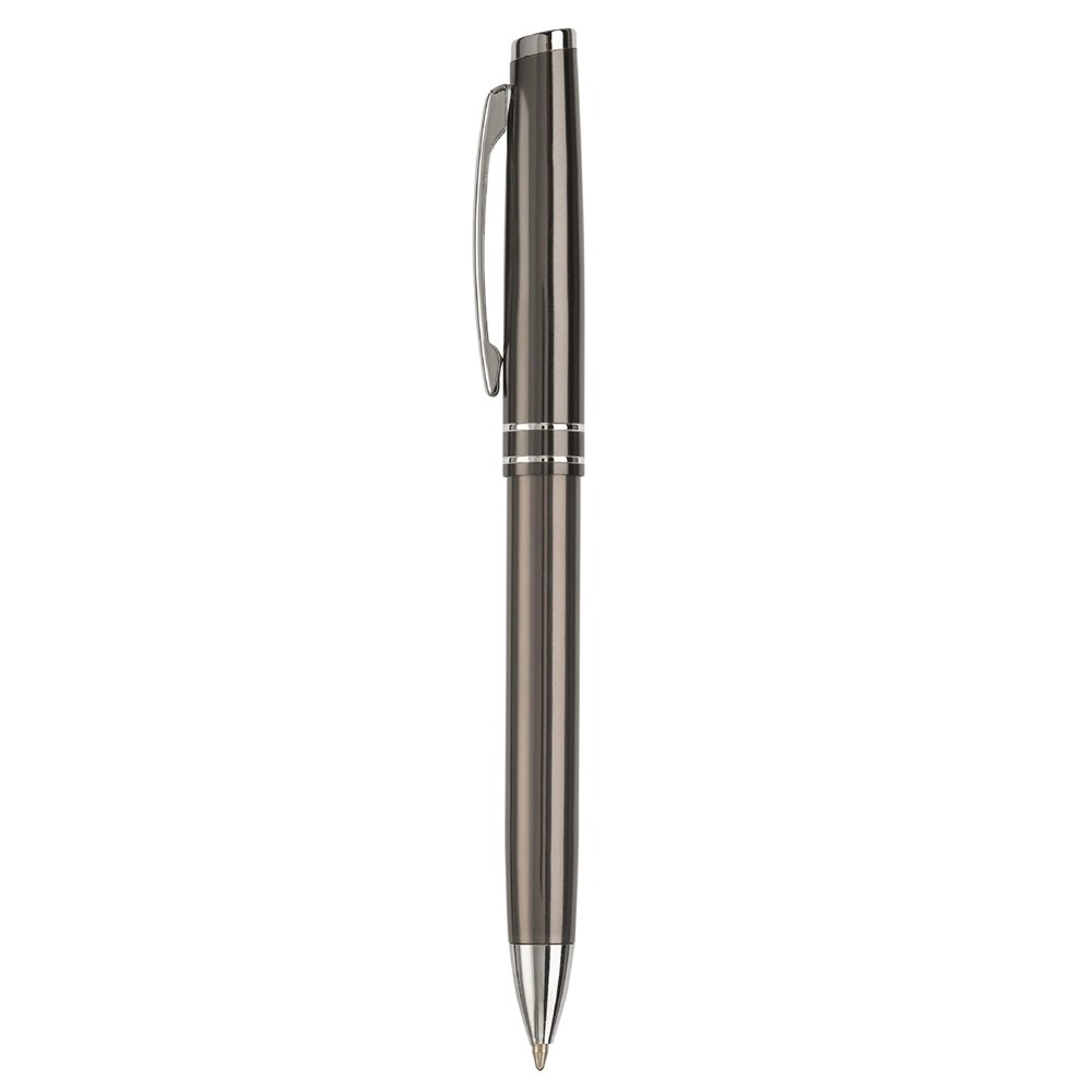 Blauschreibender Aluminiumkugelschreiber mit zwei Ringen. mehr