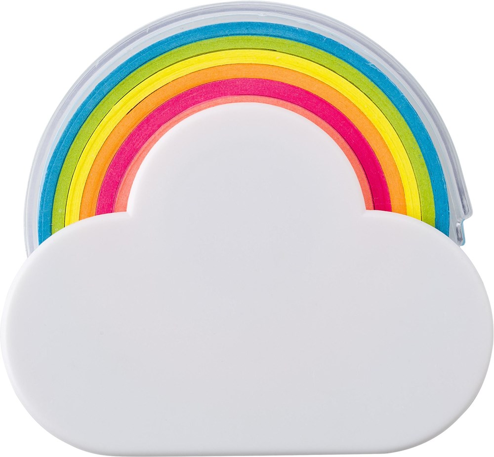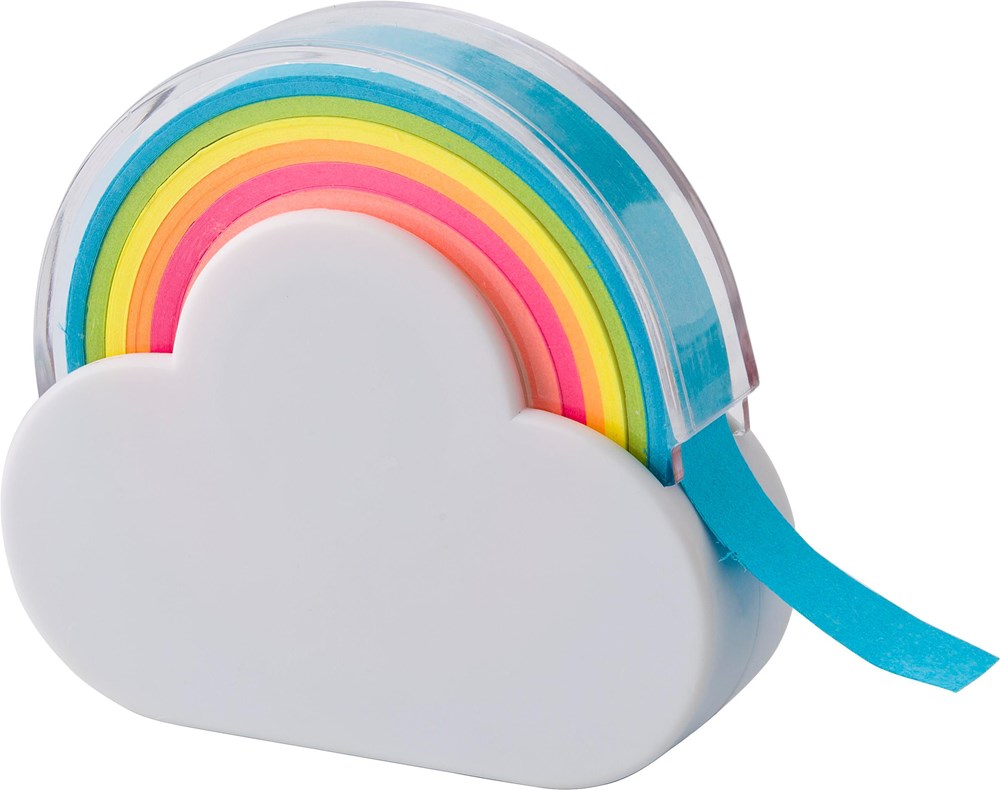 Klebeband-Spender 'Francesco' aus Kunststoff in Form einer Wolke. Die Farbe der Wolke ist weiß und die Farben des Klebebands sind blau, grün und gelb, orange und pink. Jede Farbe ist ca. 2,5 m lang.