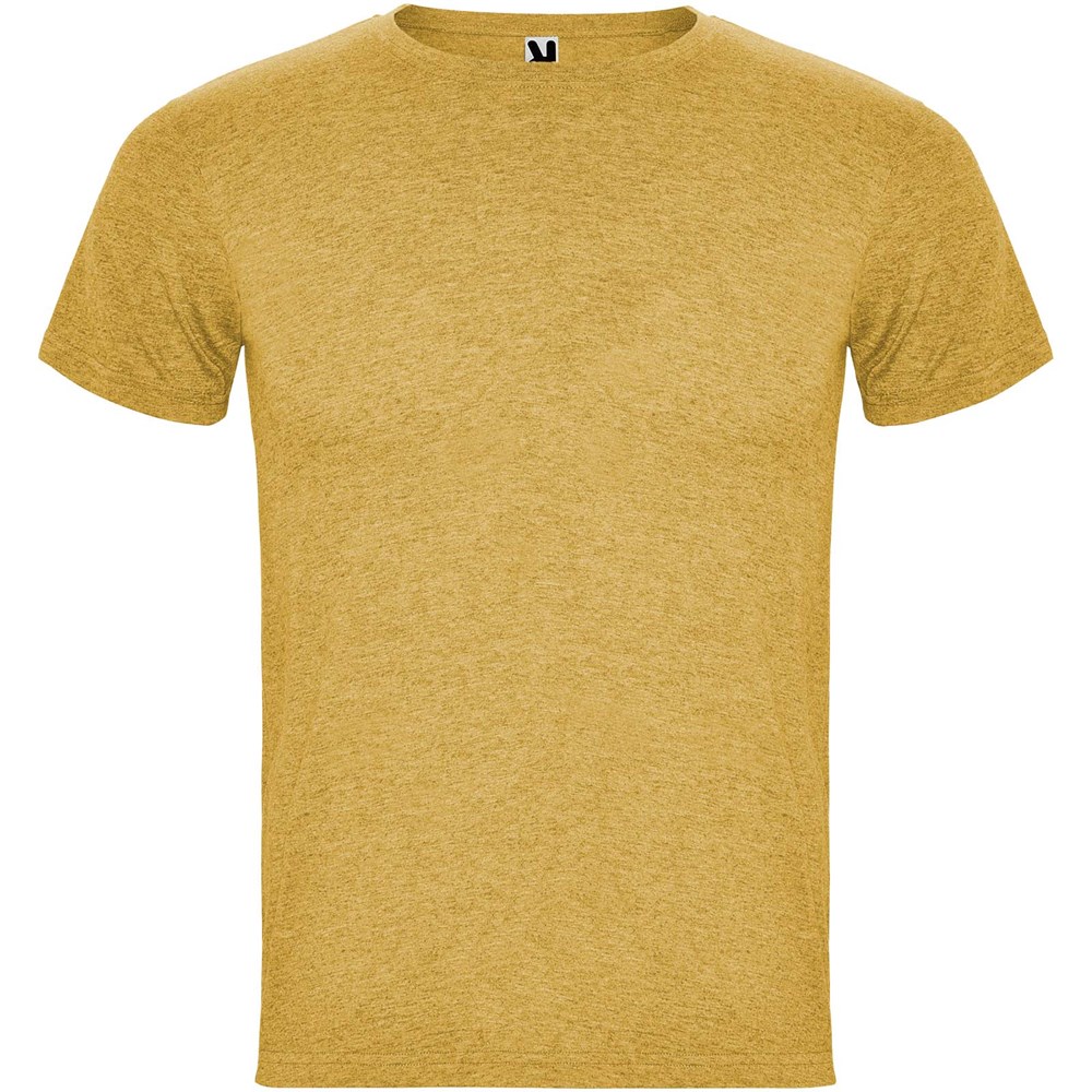 T-Shirt mit meliertem Effekt. Rundhalsausschnitt aus 1×1-Rippstrick mit innenliegenden, verstärkten und verdeckten Nähten. Schlauchförmiger Stoff. Abnehmbares Etikett.