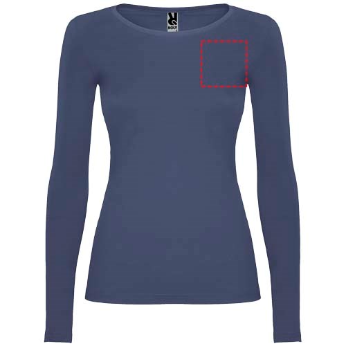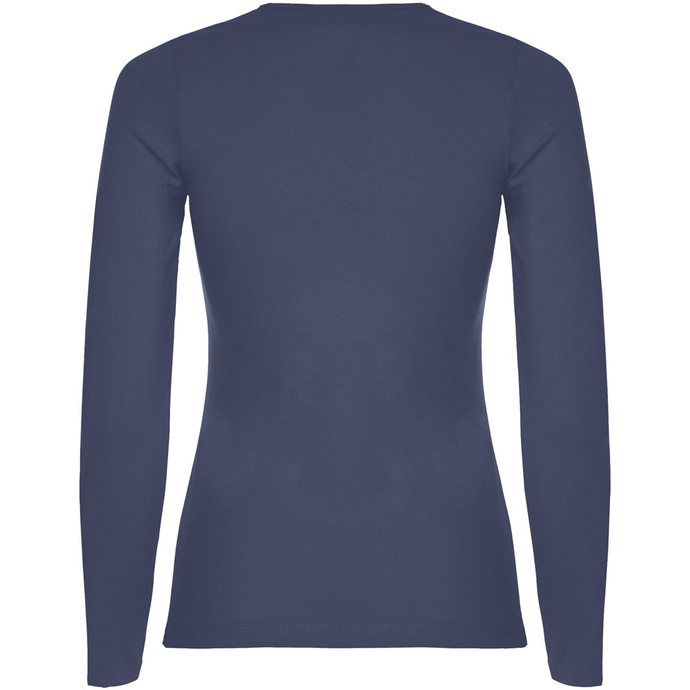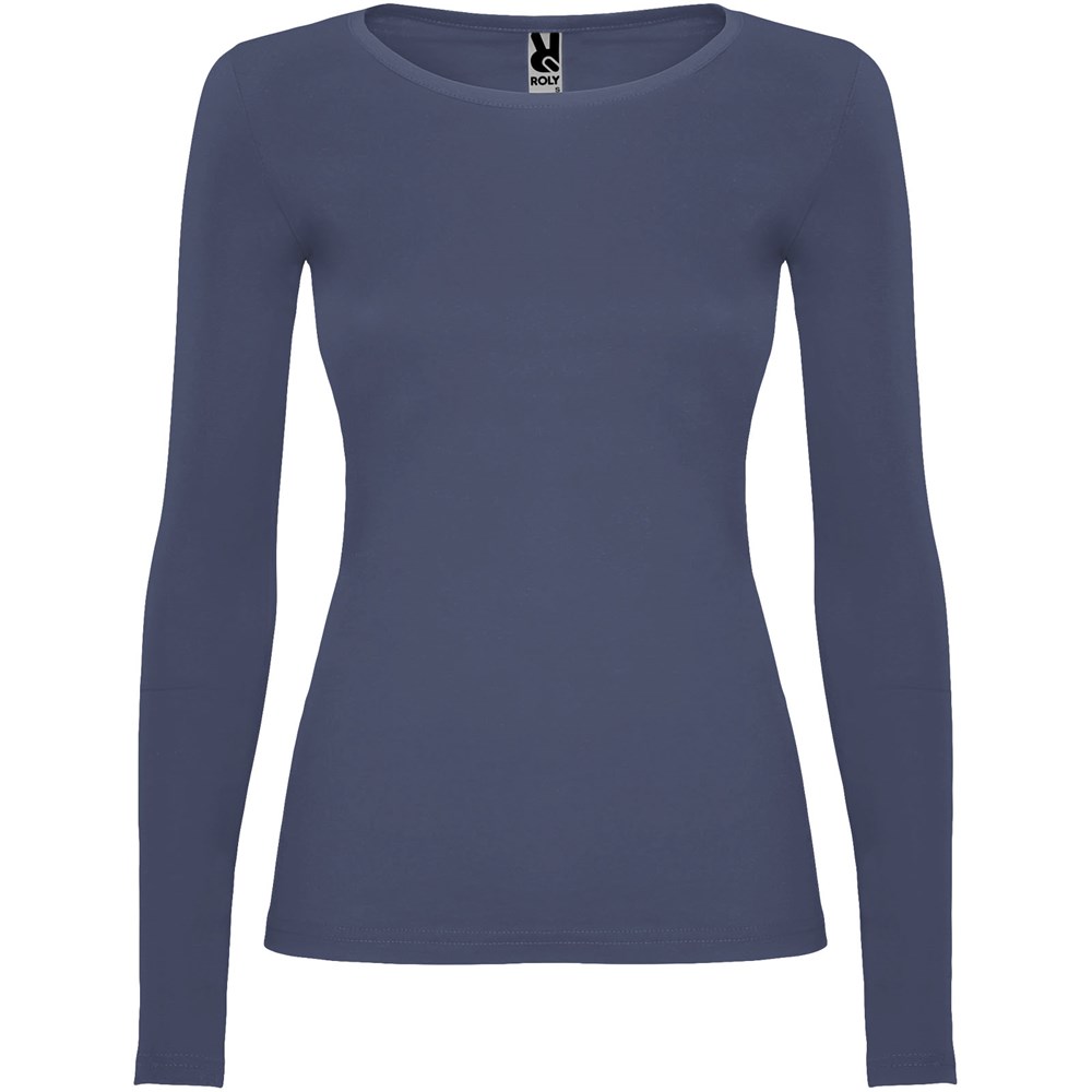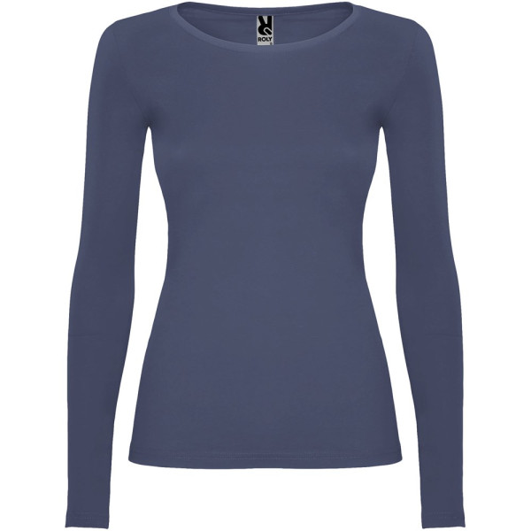 Langärmeliges, halb tailliertes T-Shirt mit feinem Halsbündchen. Keine Ärmelbündchen. Seitennähte. Herausnehmbares Etikett.