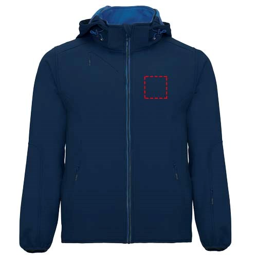 2-Lagen-Softshell mit sportlichem Schnitt, kontrastfarbigem Reißverschluss mit Kinnschutz und Zipper. Innenfutter aus kontrastfarbigem Mikrofleece. Außentasche auf der rechten Brust mit verdecktem Diagonal-Reißverschluss. Zwei Seitentaschen mit verdecktem Reißverschluss. Tasche auf dem linken Ärmel. Elastische Bündchen an Ärmeln und Saum. Einrollbare Kapuze mit kontrastfarbigem Micropolar-Futter. Herausnehmbares Etikett. Wasserabweisend. Winddicht. Das männliche Modell ist 185 cm groß und trägt Größe M, das weibliche Modell ist 174 cm groß und trägt Größe S.