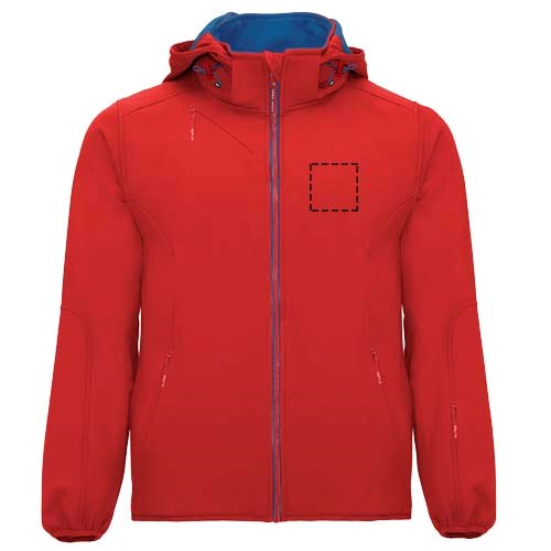 2-Lagen-Softshell mit sportlichem Schnitt, kontrastfarbigem Reißverschluss mit Kinnschutz und Zipper. Innenfutter aus kontrastfarbigem Mikrofleece. Außentasche auf der rechten Brust mit verdecktem Diagonal-Reißverschluss. Zwei Seitentaschen mit verdecktem Reißverschluss. Tasche auf dem linken Ärmel. Elastische Bündchen an Ärmeln und Saum. Einrollbare Kapuze mit kontrastfarbigem Micropolar-Futter. Herausnehmbares Etikett. Wasserabweisend. Winddicht. Das männliche Modell ist 185 cm groß und trägt Größe M, das weibliche Modell ist 174 cm groß und trägt Größe S.