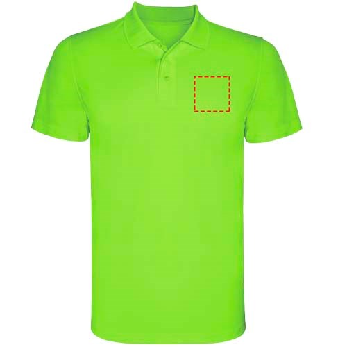 Kurzärmeliges Funktions-Poloshirt. Gestrickter Kragen mit 3-Knopfleiste. Atmungsaktives, leicht zu waschendes und zu trocknendes Material. Herausnehmbares Etikett. Technisches Gewebe. Atmungsaktiver Stoff.