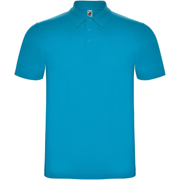 Kurzärmeliges Poloshirt mit 3-Knopfleiste und 1 × 1 geripptem Kragen. Verstärkte und verdeckte Nähte am Kragen. Herausnehmbares Etikett. Das Modell ist 190 cm groß und trägt Größe L.