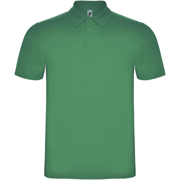 Kurzärmeliges Poloshirt mit 3-Knopfleiste und 1 × 1 geripptem Kragen. Verstärkte und verdeckte Nähte am Kragen. Herausnehmbares Etikett. Das Modell ist 190 cm groß und trägt Größe L.