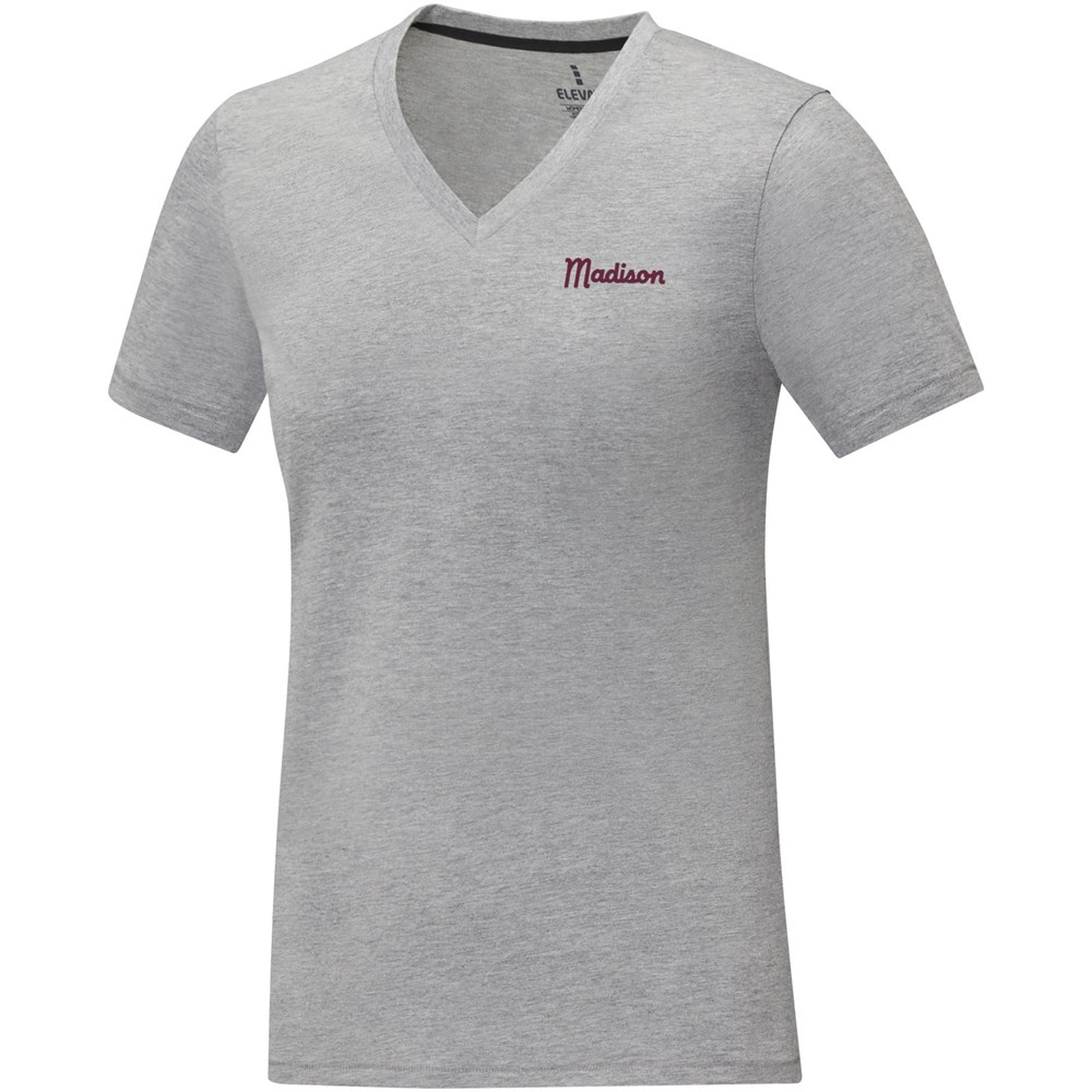 Das kurzärmelige Somoto T-Shirt für Damen mit V-Ausschnitt aus 160 g/m2 Baumwolle ist perfekt für jede Gelegenheit und eine bequeme Ergänzung für jeden Kleiderschrank. Die ringgesponnene Baumwolle sorgt für ein stärkeres und glatteres Garn, was zu einem haltbareren Stoff führt, der ein hochwertiges Branding garantiert. Der feminine Schnitt und die Seitennähte sorgen für eine gute Passform, und der V-Ausschnitt verleiht ihm einen Hauch von Stil. Das aufgedruckte Elevate-Branding im Nacken trägt ebenfalls zum Gesamtkomfort bei, und die verstärkten Schultern sorgen für einen gleichbleibenden Sitz auch nach längerem Gebrauch.