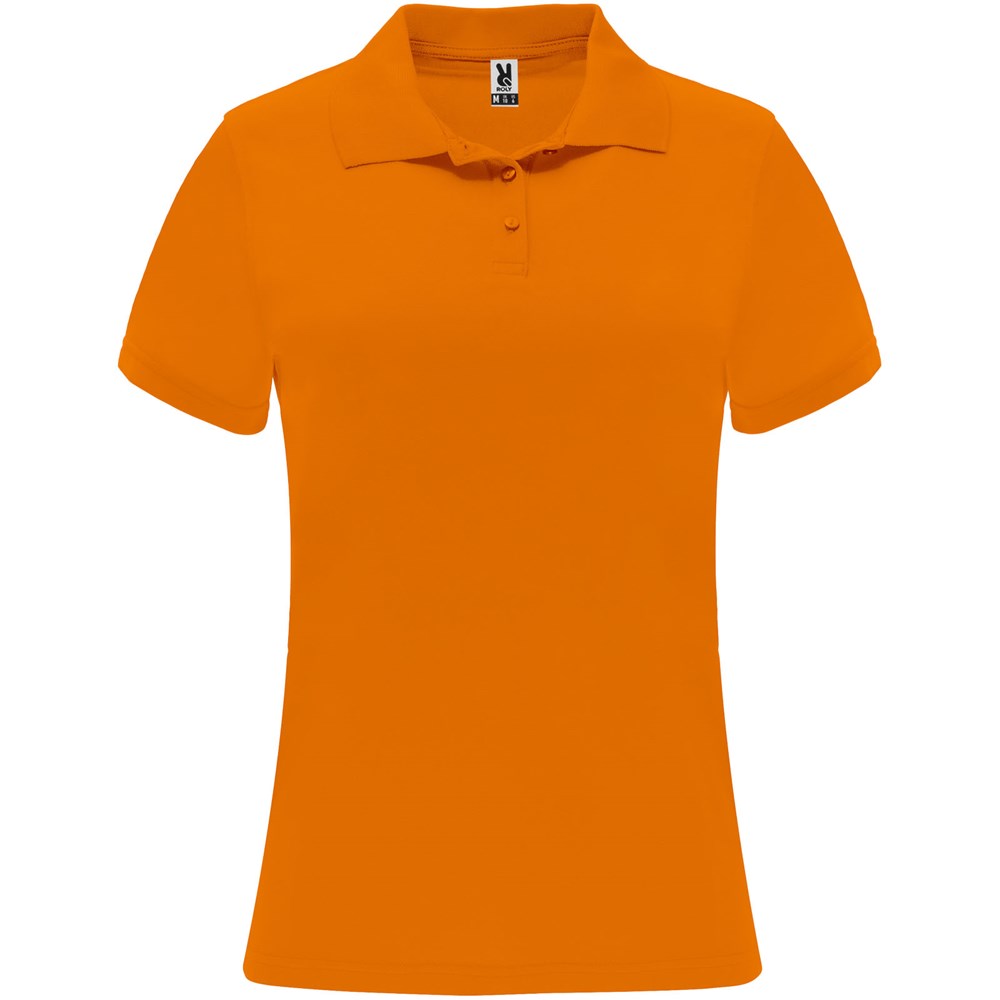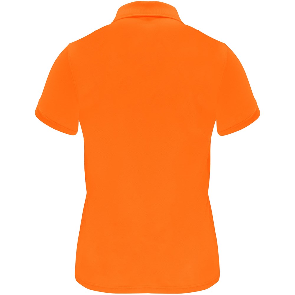 Kurzärmeliges Funktions-Poloshirt für Damen. Gestrickter Kragen mit 3-Knopfleiste. Figurbetonte Passform. Atmungsaktives, leicht zu waschendes und zu trocknendes Material. Herausnehmbares Etikett. Technisches Gewebe. Atmungsaktiver Stoff. Das Modell ist 173 cm groß und trägt Größe S.