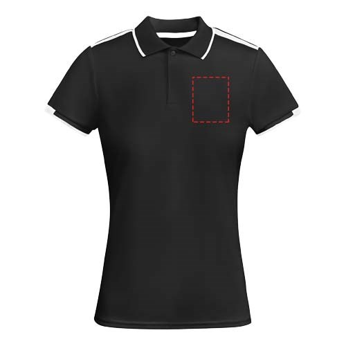 Antibakterieller Stoff aus recyceltem Polyester. 1x1-Rippstrick am Kragen und Details an den Ärmeln. Verstärkte, verdeckte Nähte am Kragen. Knopfleiste mit 2 verdeckten Druckknöpfen. Details und Schulterpartien in Kontrastfarbe. Seitenschlitze am Saum. Körperbetont. Abnehmbares Etikett.
