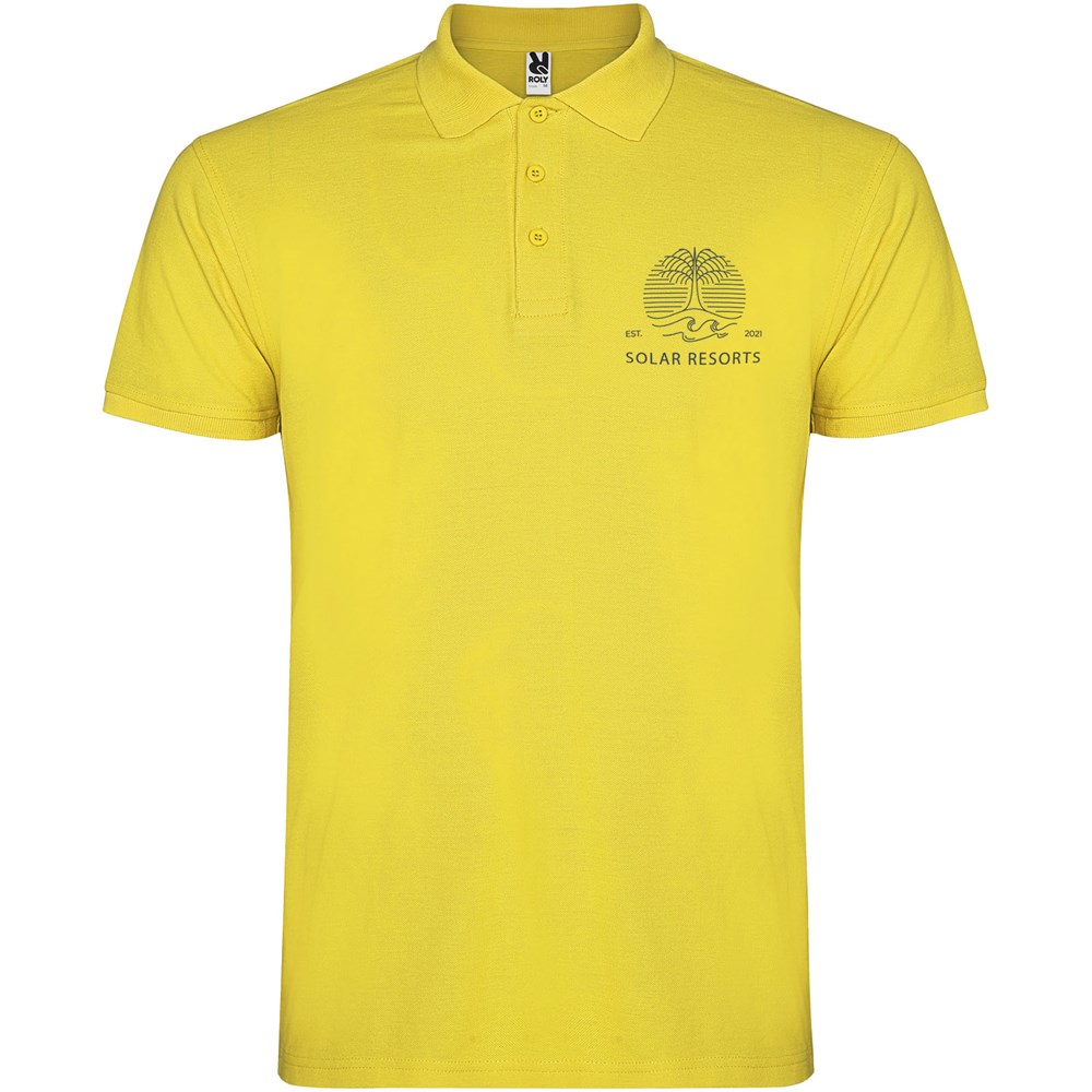 Kurzärmeliges Poloshirt für Herren. Verstärkte und verdeckte Nähte am Innenkragen. 1x1 Rippstrickbündchen an Ärmeln und Kragen. Seitennähte. 3-Knopfleiste und Seitenschlitze. Optionale Tasche. Herausnehmbares Etikett. Das Modell ist 185 cm groß und trägt Größe L.