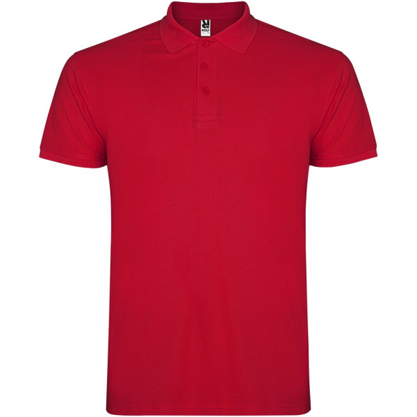 Kurzärmeliges Poloshirt für Herren. Verstärkte und verdeckte Nähte am Innenkragen. 1x1 Rippstrickbündchen an Ärmeln und Kragen. Seitennähte. 3-Knopfleiste und Seitenschlitze. Optionale Tasche. Herausnehmbares Etikett. Das Modell ist 185 cm groß und trägt Größe L.
