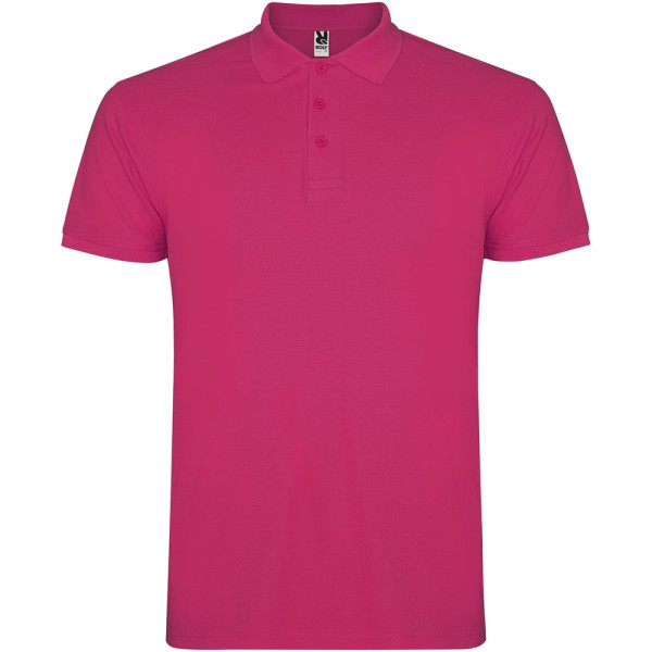 Kurzärmeliges Poloshirt für Herren. Verstärkte und verdeckte Nähte am Innenkragen. 1x1 Rippstrickbündchen an Ärmeln und Kragen. Seitennähte. 3-Knopfleiste und Seitenschlitze. Optionale Tasche. Herausnehmbares Etikett. Das Modell ist 185 cm groß und trägt Größe L.