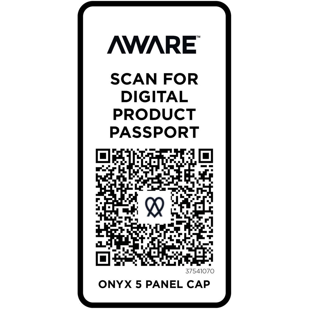 Die Onyx-5-Panel-Kappe ist aus 70 % Recyclingbaumwolle und 30 % recyceltem Polyester hergestellt. Sie ist für eine bequeme Passform mit einem Kopfumfang von 58 cm konzipiert, und lässt sich mit der Metallschnalle leicht und sicher einstellen. Die Kappe besteht aus Cyclo®-Recyclingfasern, bei denen vorsortierte Abfälle verwendet werden, die die Farbe des Garns bestimmen. Diese Fasern verringern nicht nur den Bedarf an neuen Rohstoffen, sondern sind auch Ausdruck des Engagements für eine Kreislaufwirtschaft und verkörpern das Wesen der Abfallvermeidung und der Förderung eines geschlossenen Kreislaufs. Jede Kappe wird außerdem mit einem Aware™ Tracer geliefert. Diese innovative Funktion ermöglicht es den Nutzern, die Herkunft und den Weg ihres Artikels mithilfe eines QR-Codes nachzuvollziehen, wodurch die Transparenz der Lieferkette erhöht und eine stärkere Verbindung zwischen dem Produkt und seinem Herstellungsprozess fördert.