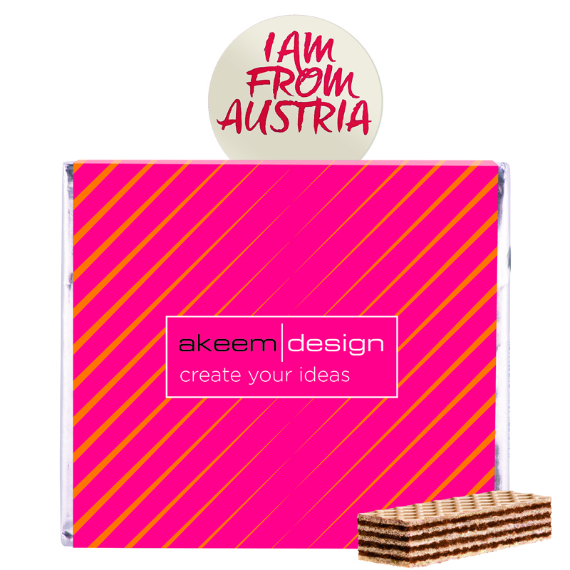 Manner Neapolitaner mit Werbeschuber aus Karton, individuell bedruckt. Inhalt: 1 Päckchen mit 2... mehr