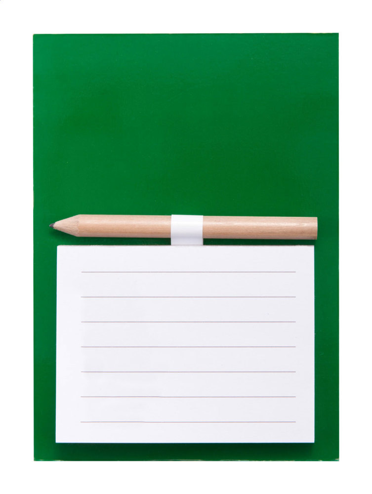 Farbiger Kühlschrankmagnet mit Notizblock (40 Seiten) und Mini-Bleistift.