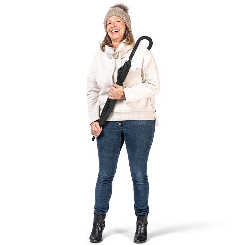 Ansprechender Automatik-Stockschirm in konsequent einheitlicher Farbgebung Komfortable Automatik-Funktion zum schnellen Öffnen, hochwertiges Windproof-PLUS-System für eine maximale Gestell-Flexibilität bei stärkeren Windböen, flexible Fiberglasschienen, stabiler Stahlstock, Soft-Touch-Griff und -Top farblich auf den Bezug abgestimmt, Griff mit integrierter Auslösetaste und Werbeanbringungsmöglichkeit, höherer Korrosionsschutz durch schwarze Galvanisierung des Stahlstocks