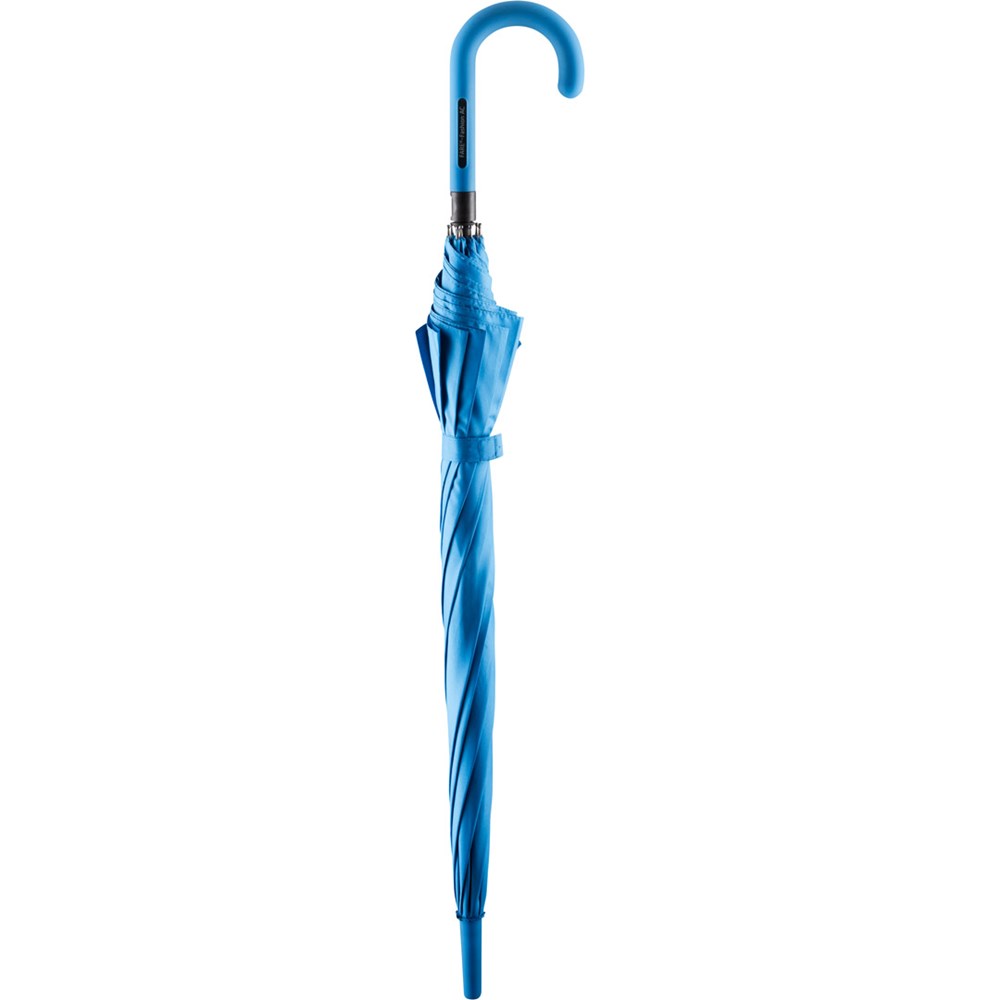 Ansprechender Automatik-Stockschirm in konsequent einheitlicher Farbgebung Komfortable Automatik-Funktion zum schnellen Öffnen, hochwertiges Windproof-PLUS-System für eine maximale Gestell-Flexibilität bei stärkeren Windböen, flexible Fiberglasschienen, stabiler Stahlstock, Soft-Touch-Griff und -Top farblich auf den Bezug abgestimmt, Griff mit integrierter Auslösetaste und Werbeanbringungsmöglichkeit, höherer Korrosionsschutz durch schwarze Galvanisierung des Stahlstocks