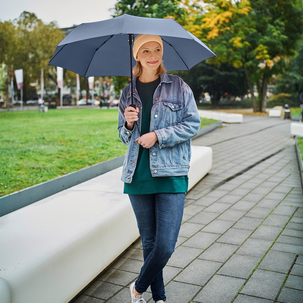 Preislich attraktiver Automatik-Taschenschirm mit Windproof-PLUS-System Komfortable Automatik-Funktion zum schnellen Öffnen, hochwertiges Windproof-PLUS-System für eine maximale Gestell-Flexibilität bei stärkeren Windböen, handsympathischer Soft-Feel-Griff mit integrierter Auslösetaste, elastischer Tragekordel und Werbeanbringungsmöglichkeit