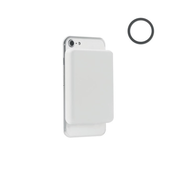 Magnetische Powerbank 5000 mAh mit kabellosem Ladegerät 15 W. Ausgang: DC 9V/2,22A (20 W), ideal zum schnellen Aufladen. Inkl. magnetischen Metallring zur Unterstützung anderer nicht-magnetischer, wireless aufladbarer Telefone. Eingang/Ausgang: Typ-C.