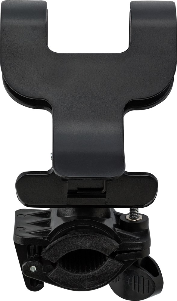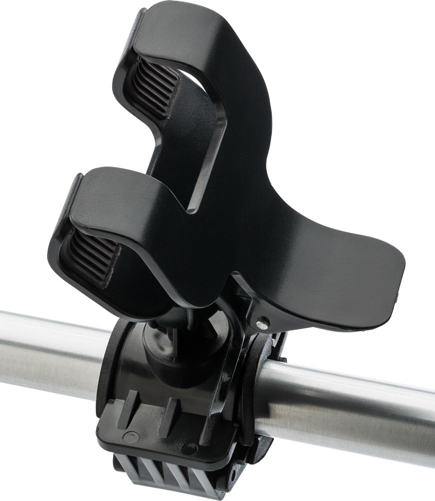 Smartphone-Halter aus Kunststoff, zur Befestigung am Fahrradlenker, passend für fast alle handelsüblichen Smartphones, arretierbar, inkl. Lenkradbefestigungskit. Der maximale Stabdurchmesser liegt zwischen 15 und 19 mm und die maximale Öffnung für den Telefonhalter beträgt 9 cm.