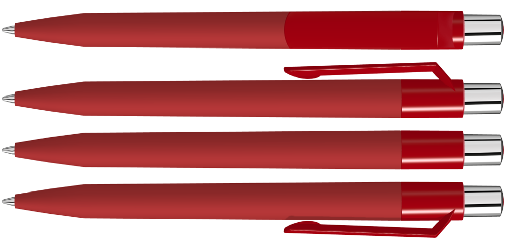 Druckkugelschreiber mit Softtouch-Schaft, gedeckt glänzendem Clip, silber glänzendem Drücker und farbigem Stopfen.