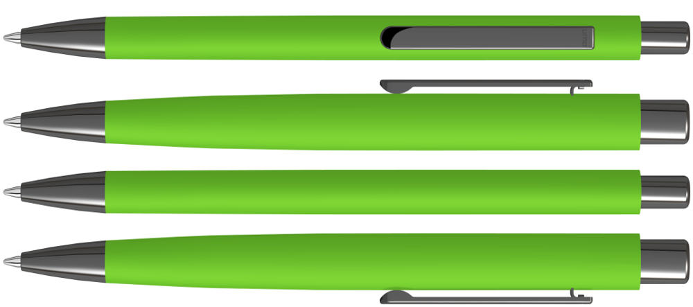 Metall-Druckkugelschreiber mit ellipsenförmigem Softtouch-Gehäuse. Metallclip, Metallspitze und ellipsenförmiger Drücker GUN metallic.