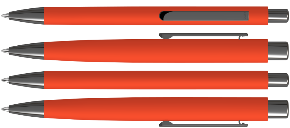 Metall-Druckkugelschreiber mit ellipsenförmigem Softtouch-Gehäuse. Metallclip, Metallspitze und ellipsenförmiger Drücker GUN metallic.