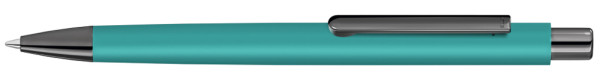 Metall-Druckkugelschreiber mit ellipsenförmigem Softtouch-Gehäuse. Metallclip, Metallspitze und... mehr