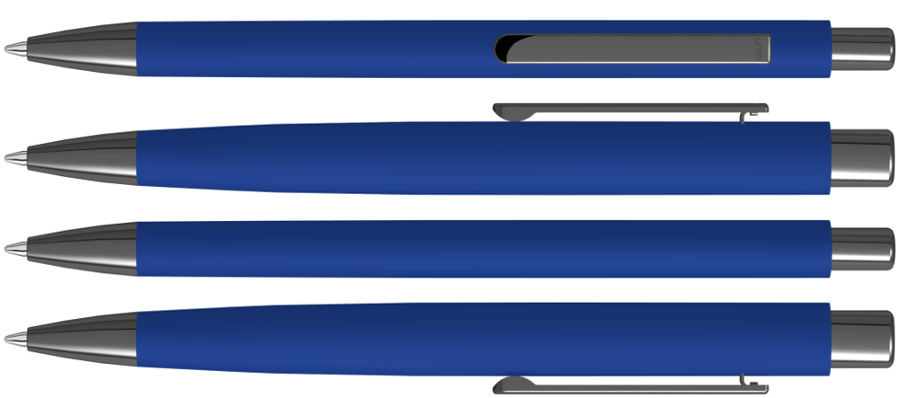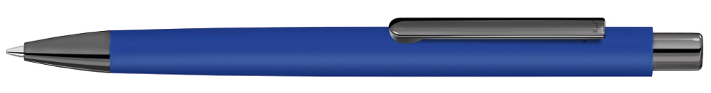 Metall-Druckkugelschreiber mit ellipsenförmigem Softtouch-Gehäuse. Metallclip, Metallspitze und ellipsenförmiger Drücker GUN metallic.