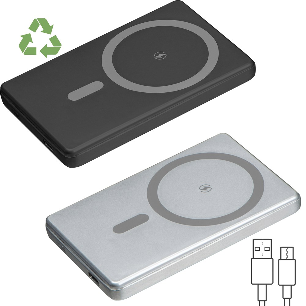 Willkommen zu unserem Magsafe® aus recyceltem Aluminium – eine moderne Lösung für kabelloses Laden! Dieses Ladegerät verfügt über 5.000 mAh Leistung für schnelles kabelloses Laden mit bis zu 10 Watt. Der integrierte Magnet ermöglicht ein einfaches Anbringen am iPhone® 12 oder höher und garantiert so eine zuverlässige Verbindung. Kompatibel mit anderen QI-fähigen Modellen kann es auch als Wireless Charger verwendet werden.