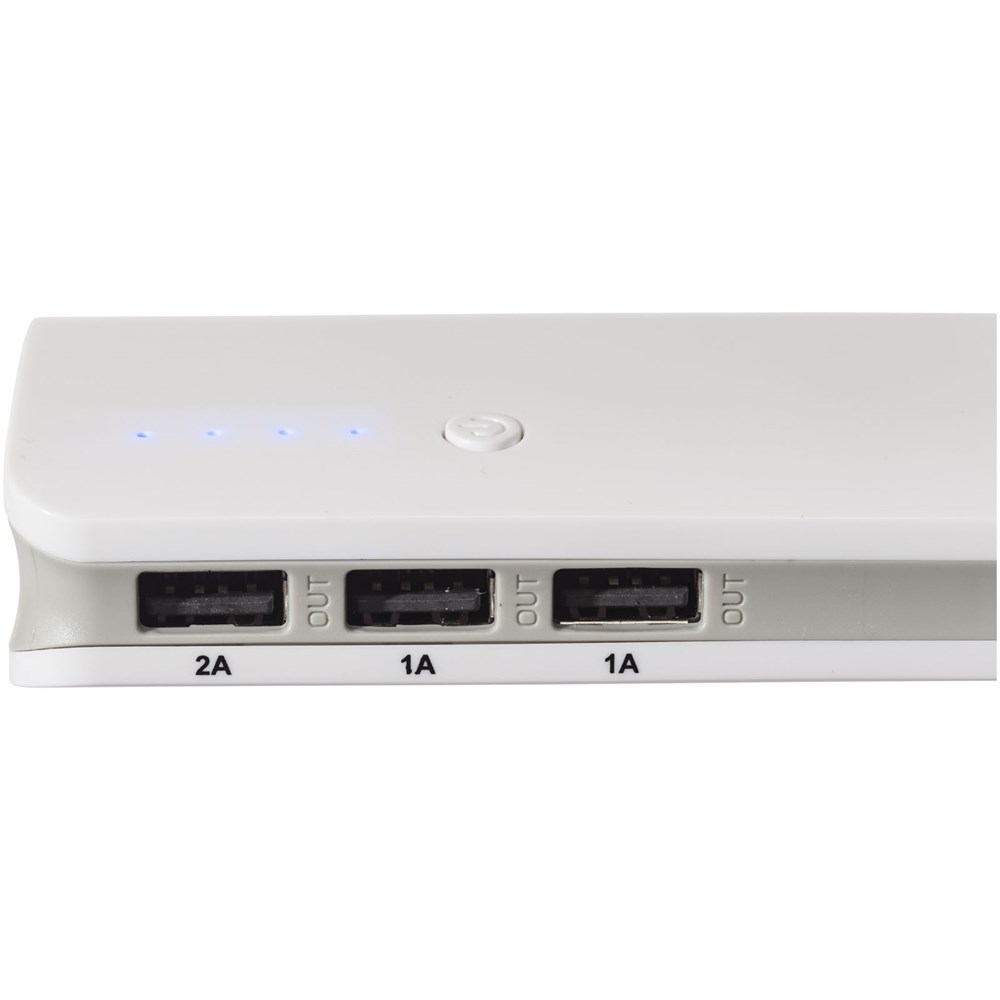 Die Spare Powerbank enthält einen 10000-mAh-Lithium-Ionen-Akku der Klasse A und eine Taschenlampe, die an dunklen Orten oder nachts verwendet werden kann. Sie können damit bis zu drei Geräte gleichzeitig mit einer maximalen Ausgangsleistung von 5 V/2,1 A aufladen (Ausgang 1: 5 V/1 A, Ausgang 2: 5 V/1 A und Ausgang 3: 5 V/2,1 A). Die 4 blauen LED Anzeigen zeigen die restliche Akkukapazität der Powerbank. Inkl. Micro-USB Ladekabel. Verpackt in einem Avenue Geschenkkarton.