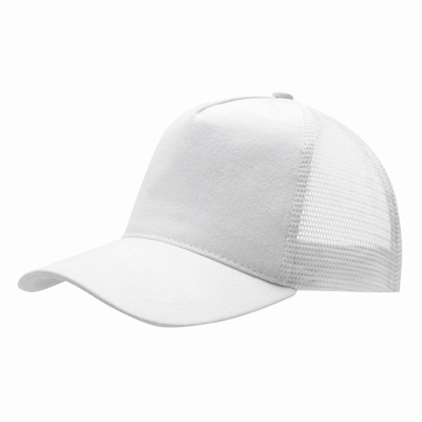 5-Panel-Baseball-Cap FASTBALL: verstärktes Frontsegment aus gebürsteter Baumwolle, übrige Segmente aus Netzstoff, Knopf, größenverstellbarer, doppelreihiger Kunststoffverschluss am Hinterkopf