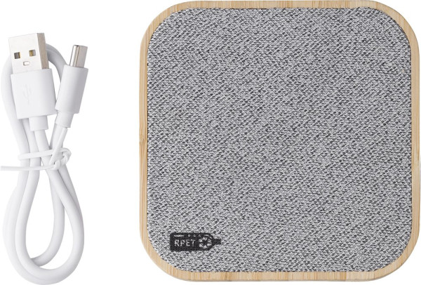Kabelloses Ladegerät aus Bambus mit rPET-Details. Schnelle Ladung 15W. Einzeln verpackt in einer... mehr