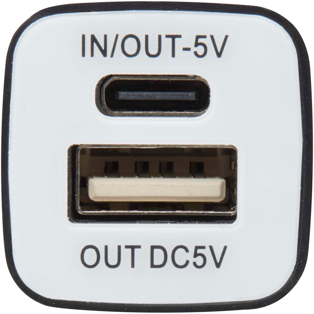 Rechteckig geformte Powerbank, mit einem transparenten Gehäuse. Ein buntes Modell, robust und einfach in der Tasche oder Geldbörse zu lagern. Ladekabel im Lieferumfang enthalten. Ein LED-Licht zeigt an, dass die Batterie aufgeladen wird. Die Lithium-Ionen-Batterie kann in 2 Stunden aufgeladen werden.