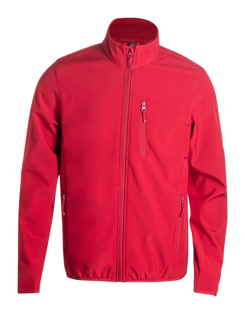 Atmungsaktive, wasser- und winddichte RPET-Softshelljacke mit Reißverschluss, Brust- und Seitentaschen. Material außen: 92 % RPET-Polyester und 8 % Elastan. Material Innen: Mikrofleece aus 100 % RPET-Polyester (300 g/m²).