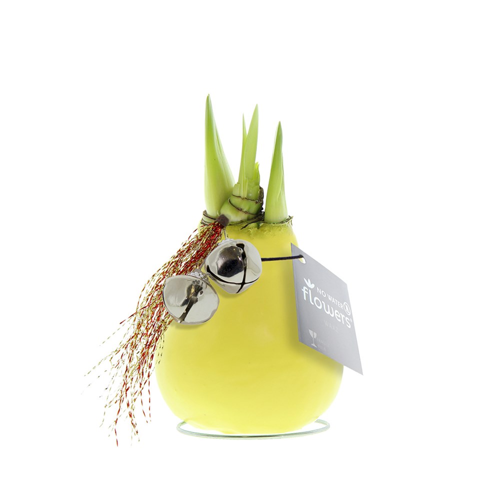 No Water Flowers® sind ein luxuriöses, wachsendes und blühendes Geschenk. Die lebenden No Water Flowers® sind bekannt für ihre einzigartigen handgefertigten Wachs-Amaryllis-Zwiebeln. Diese speziell ausgewählten und getesteten Amaryllis-Zwiebeln haben genug Energie, um ohne Wasser zu wachsen und zu blühen. Authentische No Water Flowers® haben relativ kurze Blütenstiele, fallen nicht um und blühen garantiert. Jede No Water Flowers® wird sorgfältig gereinigt und perfekt gewachst. Dadurch erhält die Blumenzwiebel ein zeitgemäßes und modisches Aussehen. Diese No Water Flowers® haben ein klingelndes Glöckchen, das an der Zwiebel befestigt ist. Wie lustig und auffällig ist es, mit einem klingelnden Geräusch hereinzukommen? Das macht Sie auf jeden Fall bemerkbar. Die No Water Flowers® sind das perfekte Weihnachtsgeschenk.