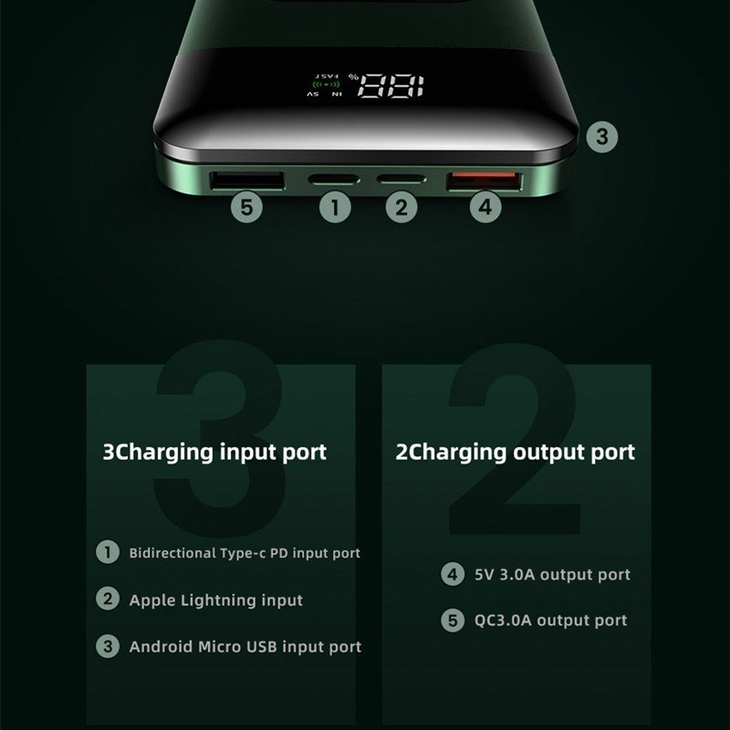 Schnelles laden für unterwegs mit unserer neuen Wireless Alu Powerbank! Diese Powerbank hat eine hochwertige Alu Hülle und 10‘000 mAh Polymer Batterie. Sie können ihr Handy einfach auf die Schwarze Fläche Legen und per Fast-Charging* laden (bis zu 22.5 Watt Kabelgebunden & 15 Watt Wireless).Mit bis zu 22.5 Watt Kabelgebunden & 15 Watt Kabellos laden.Gewicht: 383 GrammAnschlüsse:2 x USB-A1 x USB-C1 x Lightning