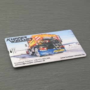 Größe (L x B x H): 83 x 52 x 3 mm, Gewicht: 9 g, mögliche Veredelungsbereiche: Vorderseite, Größe 83 x 52 mm, Rückseite, Größe 83 x 52 mm, Vorderseite COB-Teil, Größe 24 x 9 mm, Einfärben Kunststoff ab 1000 Stück, Hinweis: Die 3.0 variante ist 85 x 55