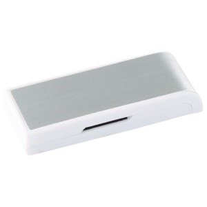 Größe (L x B x H): 32 x 12 x 5 mm, Gewicht: 5 g, mögliche Veredelungsbereiche: Vorderseite, Größe 27 x 8 mm, Rückseite, Größe 27 x 8 mm, Einfärben Metall ab 500 Stück