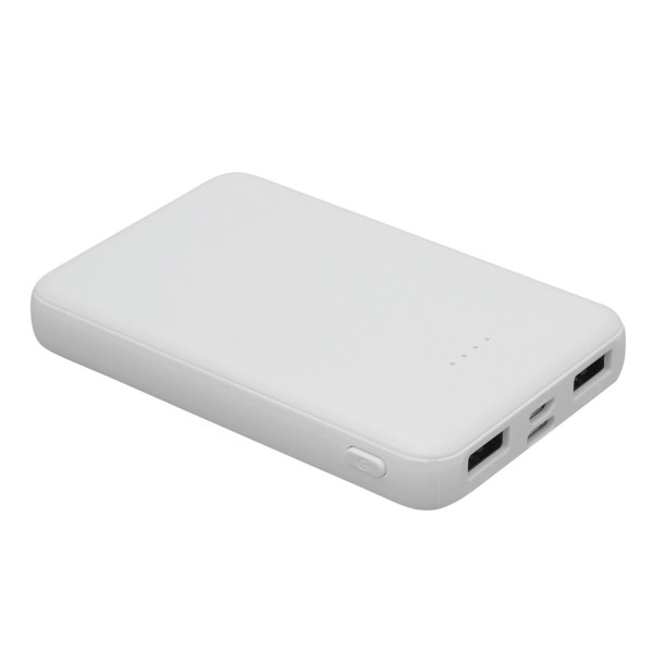 Powerbank POCKET ENERGY: geeignet für Smartphones und USB-betriebene Geräte, inkl. USB-Ladekabel mit USB Typ C Stecker (Länge: ca. 30 cm), mit LED-Ladestandanzeige, Ein- und Ausschalter, je 1 USB Typ C und Micro-USB Eingang, 2 USB Typ A und 1 USB Typ C Ausgang, Eingangsleistung: 5V/2A, Ausgangsleistung: 5V/2A, Kapazität: 5.000 mAh, leistungsstarker Lithium-Akku, Zweischicht-Schutzschaltung, Betriebsanzeigelicht, in Box