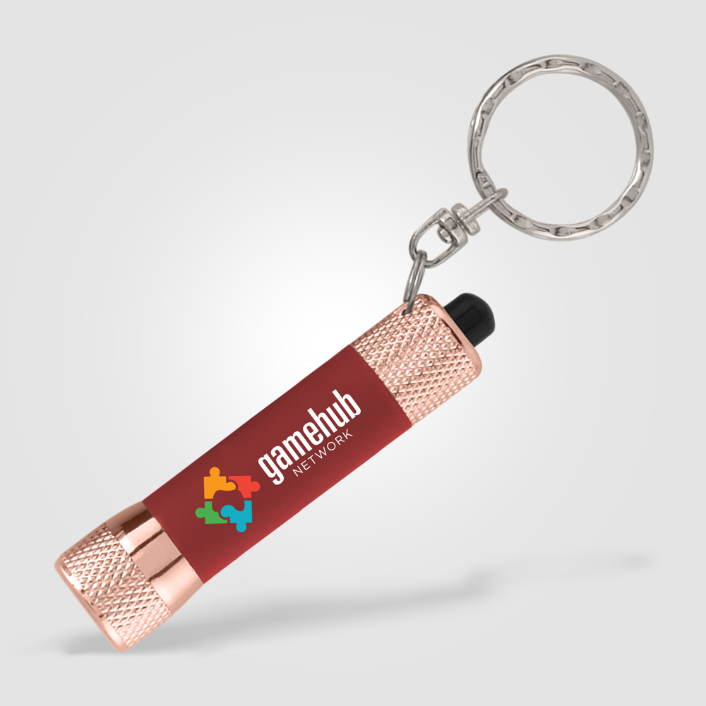 Taschenlampen-Schlüsselanhänger als modisches Accessoire? Darauf können Sie wetten! Personalisieren Sie diesen Soft-Touch-3-LED-Taschenlampen-Schlüsselanhänger mit Roségold-Besatz mit Ihrer Botschaft und Sie stehen im Rampenlicht! Mit hellem, lang anhaltendem Licht, einem weichen, gummierten Finish und atemberaubenden roségoldenen Verzierungen wird dieses Werbegeschenk eine stolze Ergänzung zu den alltäglichen Accessoires Ihres Empfängers sein.