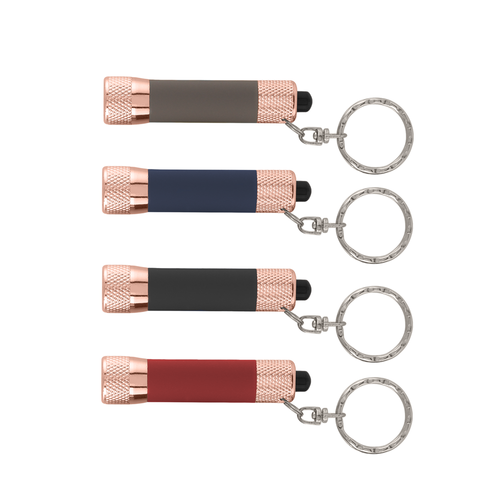 Taschenlampen-Schlüsselanhänger als modisches Accessoire? Darauf können Sie wetten! Personalisieren Sie diesen Soft-Touch-3-LED-Taschenlampen-Schlüsselanhänger mit Roségold-Besatz mit Ihrer Botschaft und Sie stehen im Rampenlicht! Mit hellem, lang anhaltendem Licht, einem weichen, gummierten Finish und atemberaubenden roségoldenen Verzierungen wird dieses Werbegeschenk eine stolze Ergänzung zu den alltäglichen Accessoires Ihres Empfängers sein.