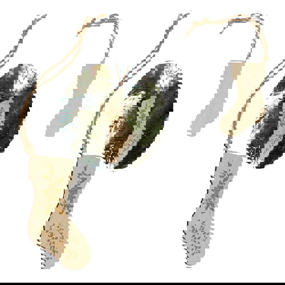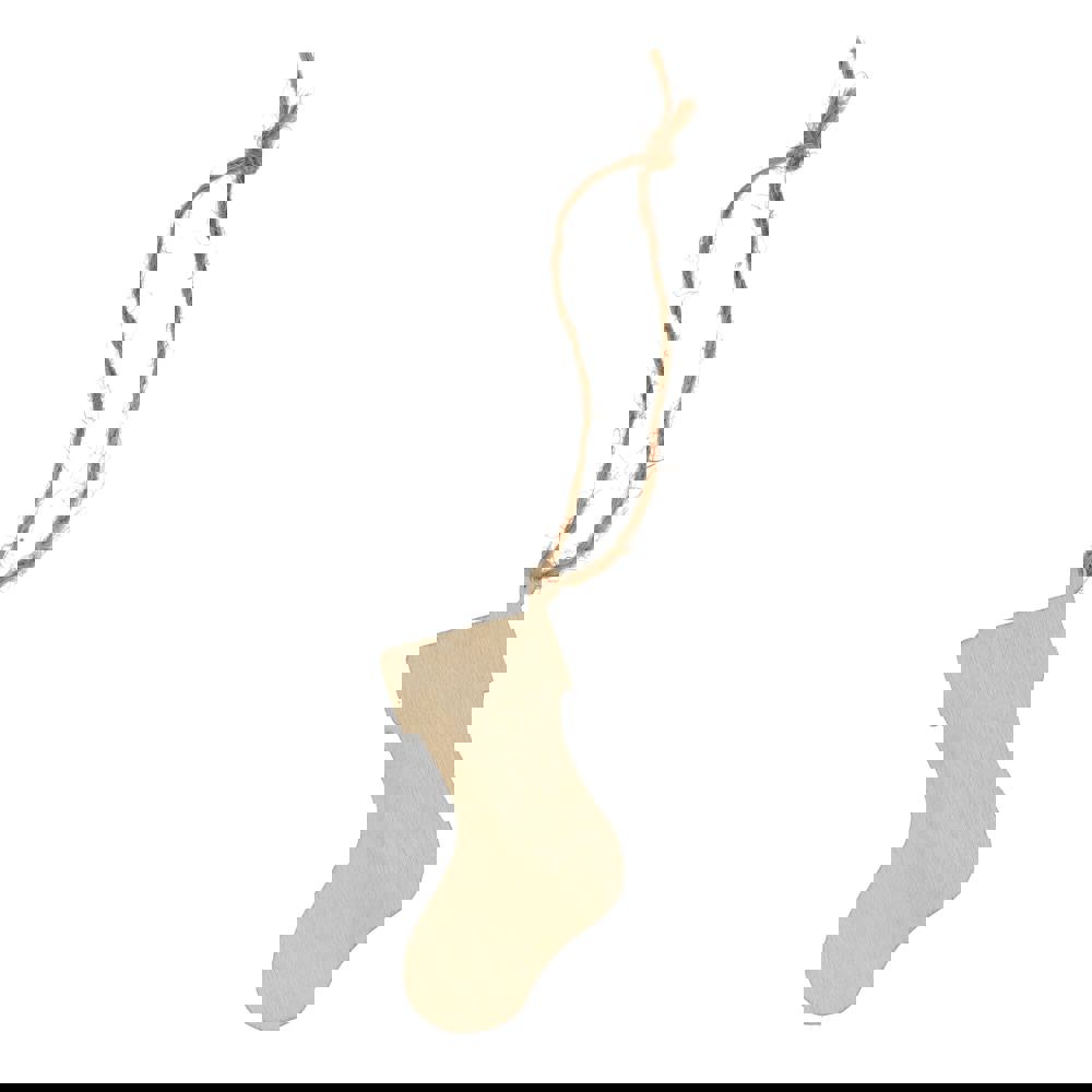 Feiern Sie die Saison mit diesem charmanten Holzornament in Strumpfform. Die klassische Form und der großzügige Platz für das Branding machen es perfekt für die Personalisierung, um ein einzigartiges Andenken an die Feiertage zu schaffen und ein durchdachtes Geschenk zu machen. Ideal für die Dekoration von Weihnachtsbäumen, Kränzen oder festlichen Auslagen.