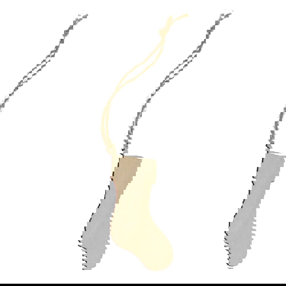 Strumpfförmiges Weihnachtsornament aus Holz