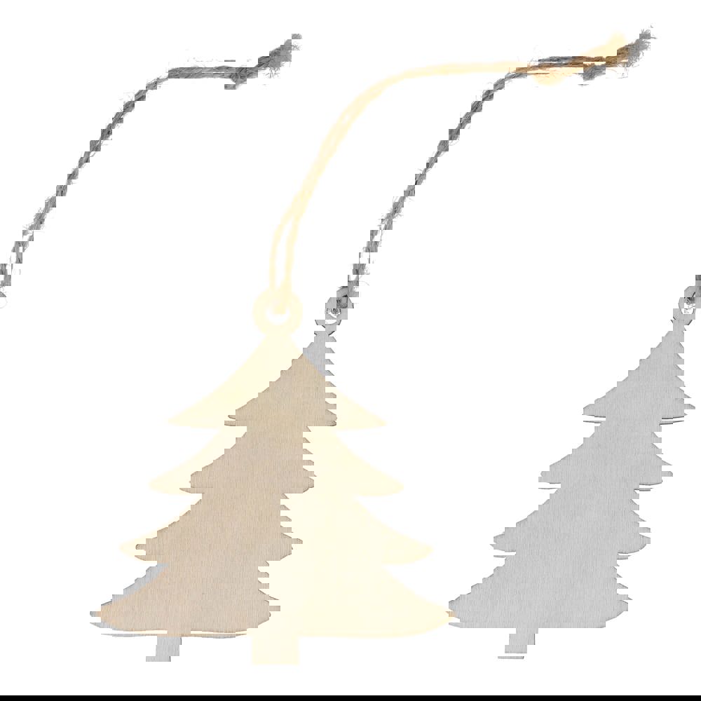 Feiern Sie die Saison mit diesem charmanten Holzornament in Form eines Baumes. Die klassische Form und der großzügige Platz für das Branding machen es perfekt für die Personalisierung, um ein einzigartiges Andenken an die Feiertage zu schaffen und ein durchdachtes Geschenk zu machen. Ideal für die Dekoration von Weihnachtsbäumen, Kränzen oder festlichen Auslagen.