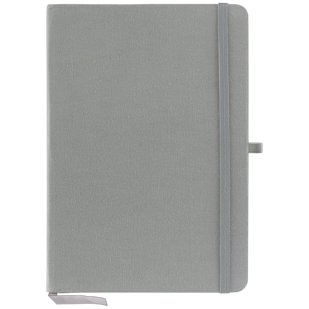 Dieses Notizbuch aus recycelter Baumwolle verfügt über einen Einband aus recycelter Baumwolle und enthält 80 elfenbeinfarbene, linierte Blätter aus 70 g/m² Recyclingpapier. Das Notizbuch ist mit einem passenden elastischen Riemen, einer Stiftschlaufe und einem Lesezeichen aus Band ausgestattet.