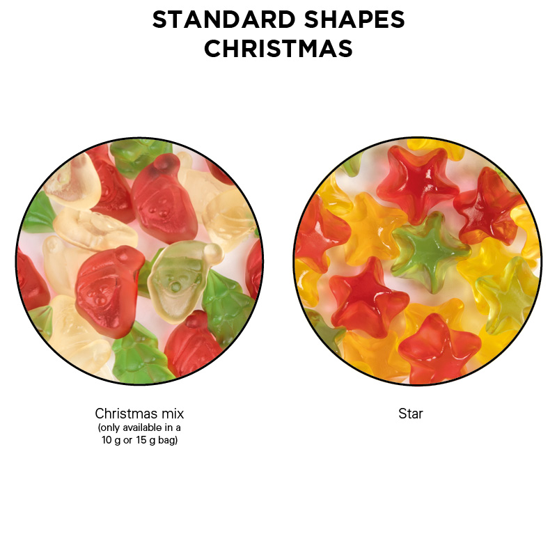 Minitüte 15 g, kompostierbare Folie weiß, Trolli Fruchtgummi Weihnachtsmischung