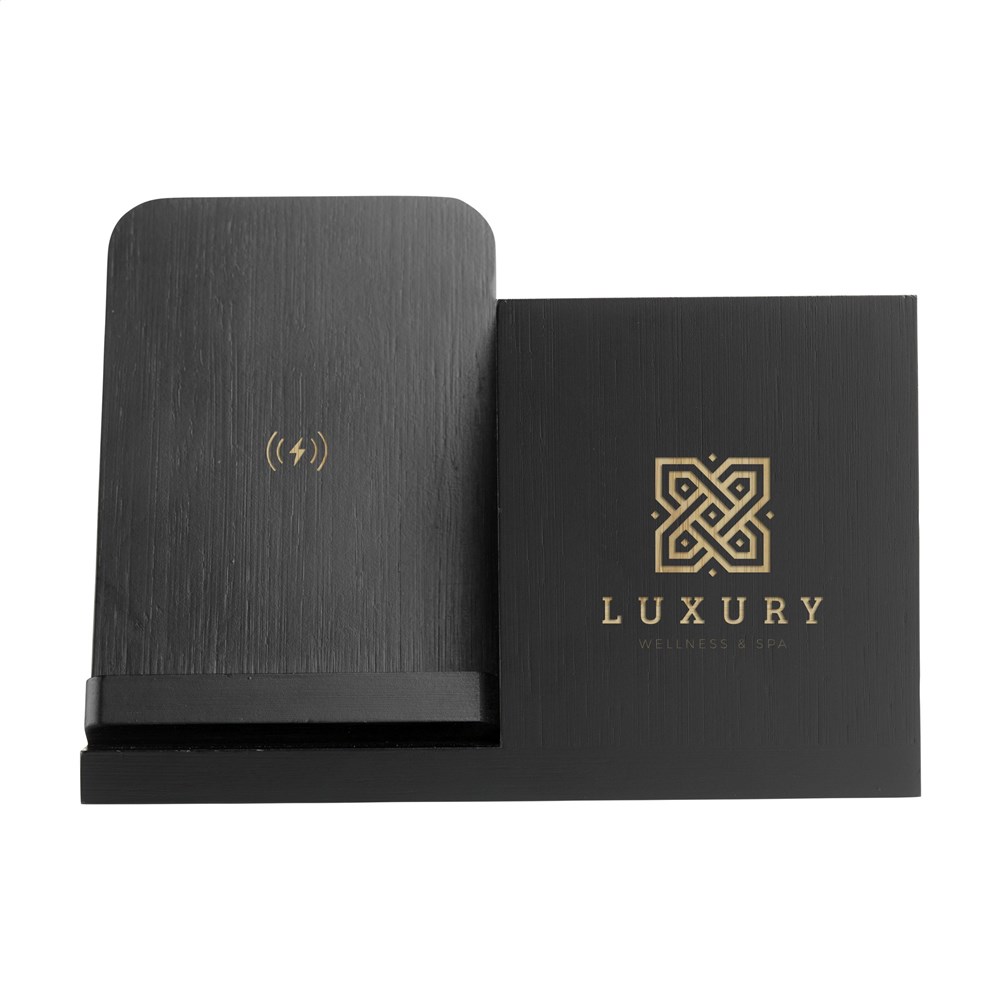 Kabellose Ladestation und Stifthalter in einem. Dieses Schreibtisch-Accessoire besteht aus hochwertigem und natürlichem FSC 100% zertifiziertem Bambus. Das 15W-Ladegerät ist ideal zum Laden von Mobiltelefonen. Kompatibel mit allen mobilen Geräten, die kabelloses Laden per QI unterstützen (neueste Generationen von Android- und iPone-Geräten). Eingang: 9V/2A. Kabelloser Ausgang: 15W. Stifte und kleine Gegenstände können in der praktischen Halterung aufbewahrt werden. Auf diese Weise halten Sie Ihren Schreibtisch jederzeit ordentlich und organisiert. Inklusive PVC-freiem Ladekabel USB-C zu USB-C und Gebrauchsanweisung. Verpackt pro Stück.