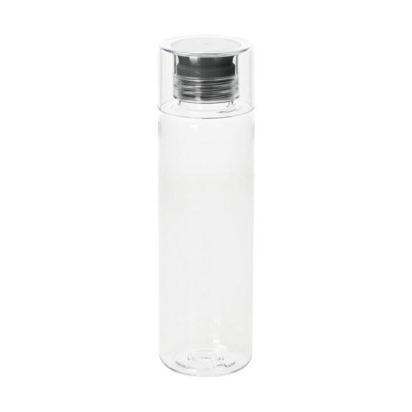 Glasklare, leichte Flasche aus Tritan mit verschraubbarem Deckel und speziellem Silikonstopfen zum Ausschenken. Füllmenge: 0,58 Liter.