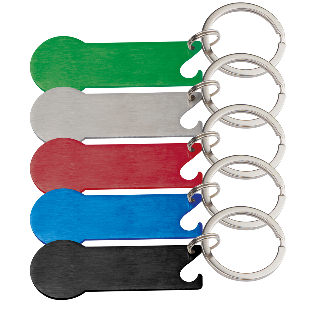 Unser Metall-Schlüsselanhänger mit integriertem Einkaufswagenchip und Flaschenöffner ist ein... mehr