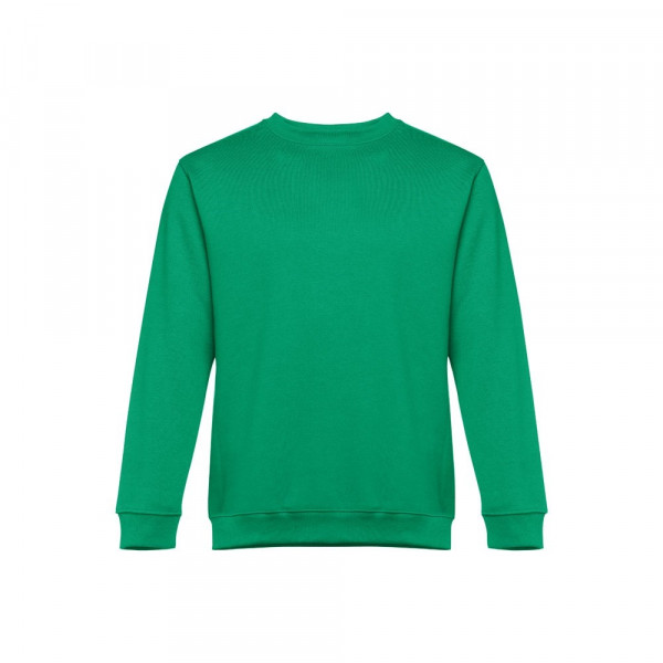 Sweatshirt aus 50% Baumwolle und 50% Polyester (300g/m²), unisex. Innen kardiert, 1x1 Ripp, Bund am Ärmel und Saum, Doppelnaht und Verstärkungsband am Kragen. Größen: S, M, L, XL, XXL